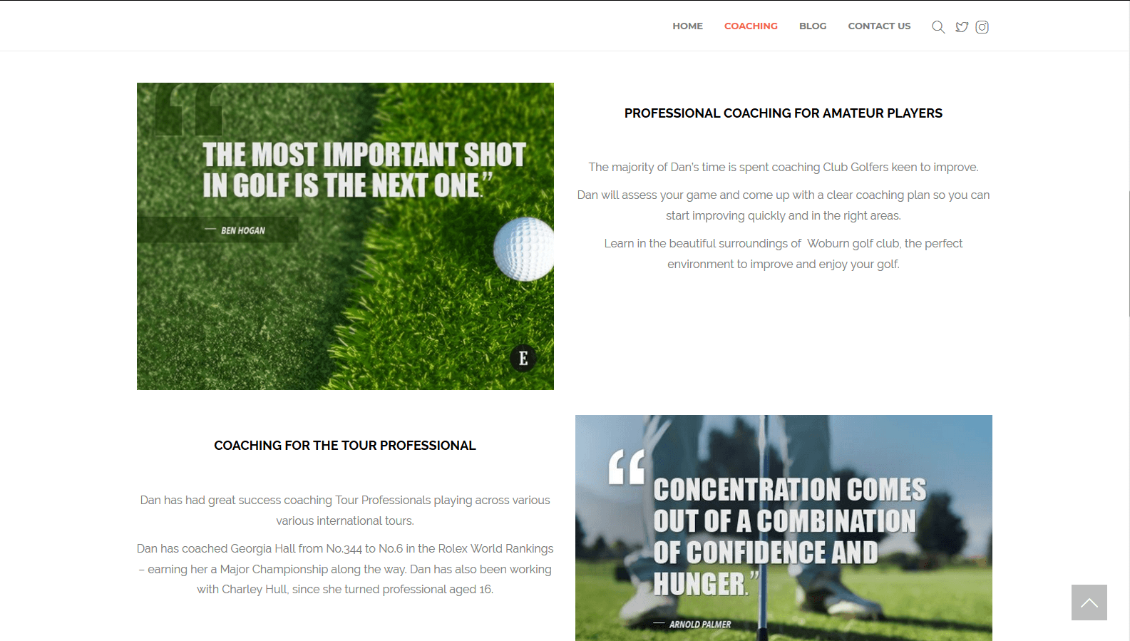Result: Sam Wilson Golf has many sections and pages, but the core concept of the website for visitors is the ability to take golfing courses, learn about golfing and their programs, play golf with professionals and most importantly, to become better at this sport. The website is fully responsive.